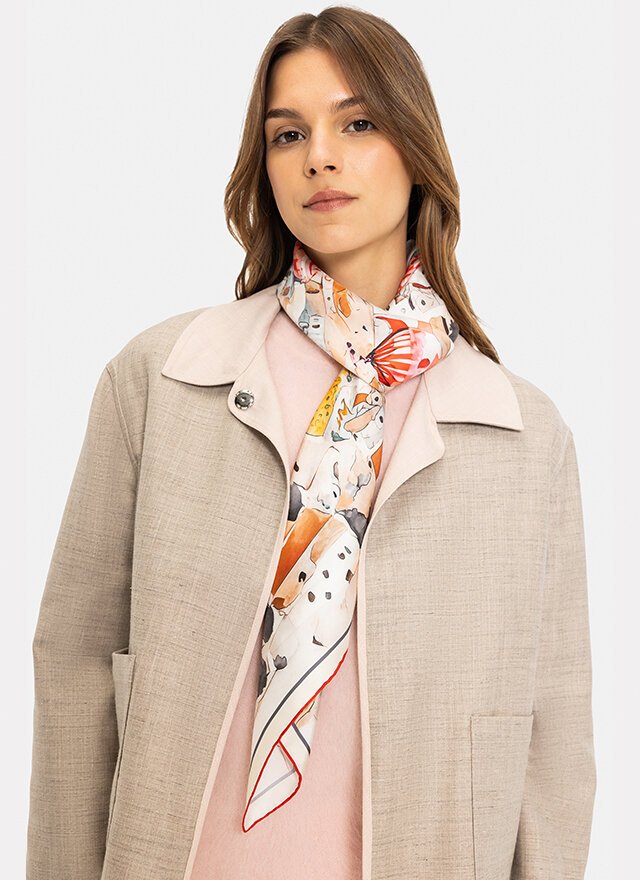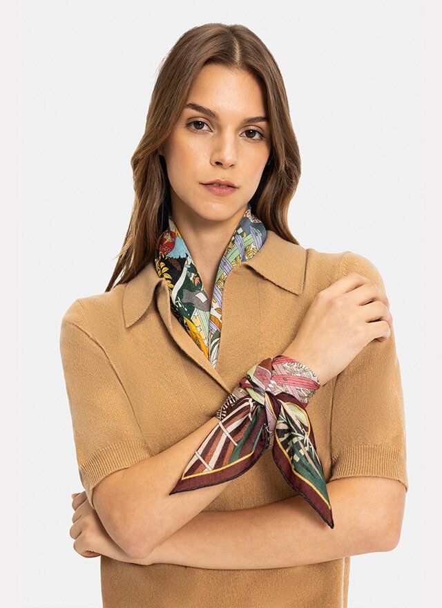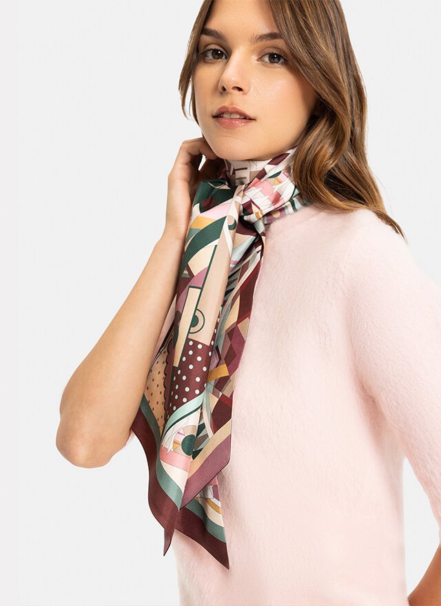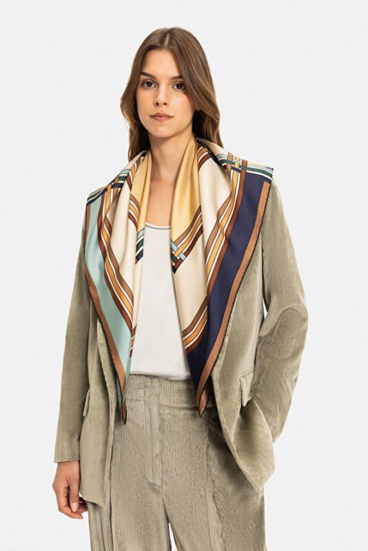 İpek twill dokusunda, modern çizgilerle yorumlanan VALERICE eşarpları. Her detay, stilinizi anlatır.