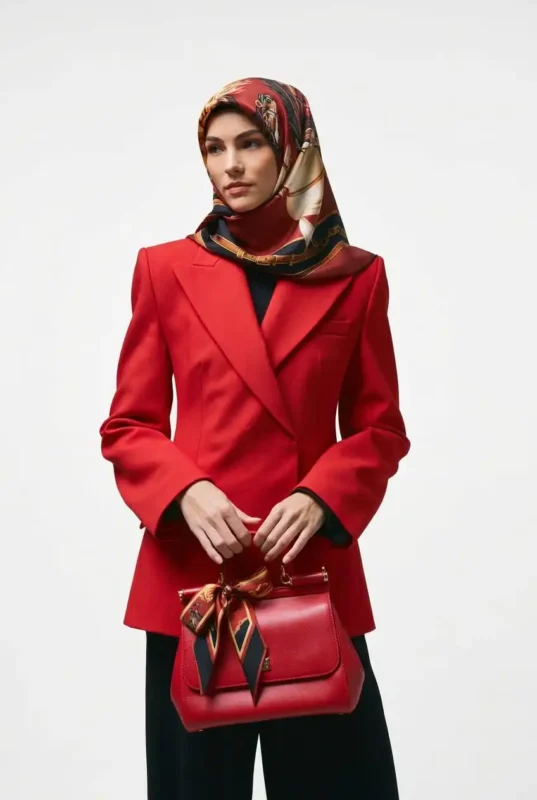 Gül Bahçesi Desen / Kırmızı Eşarp