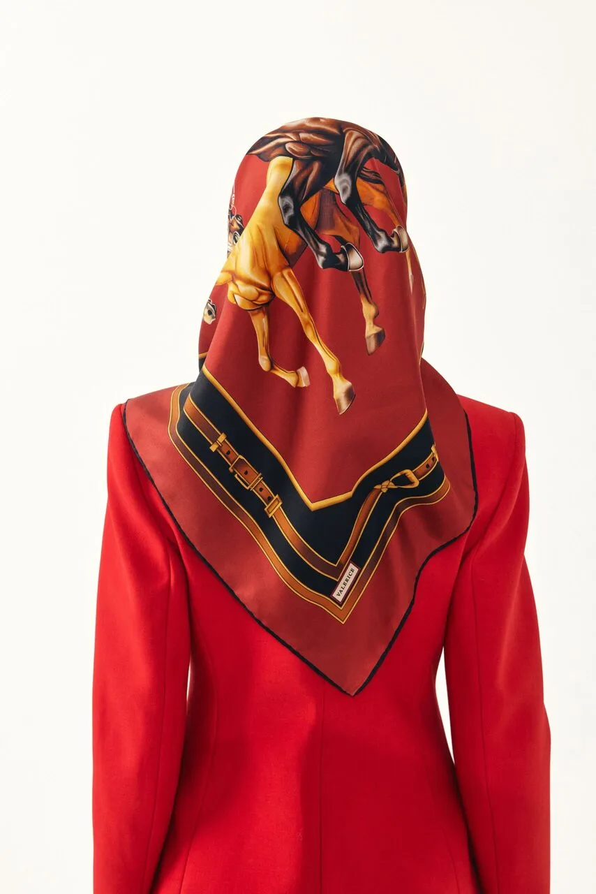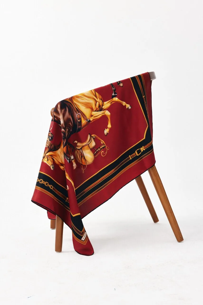 Yüksek kaliteli twill kumaşı ve asil at figürleriyle bezeli tasarımıyla stilinizi tamamlarken klasik ve güçlü bir görünüm sunuyor. Bu eşarp, hem klasik hem de çağdaş kombinlere uyum sağlayarak gardırobunuzun vazgeçilmezi olacak.