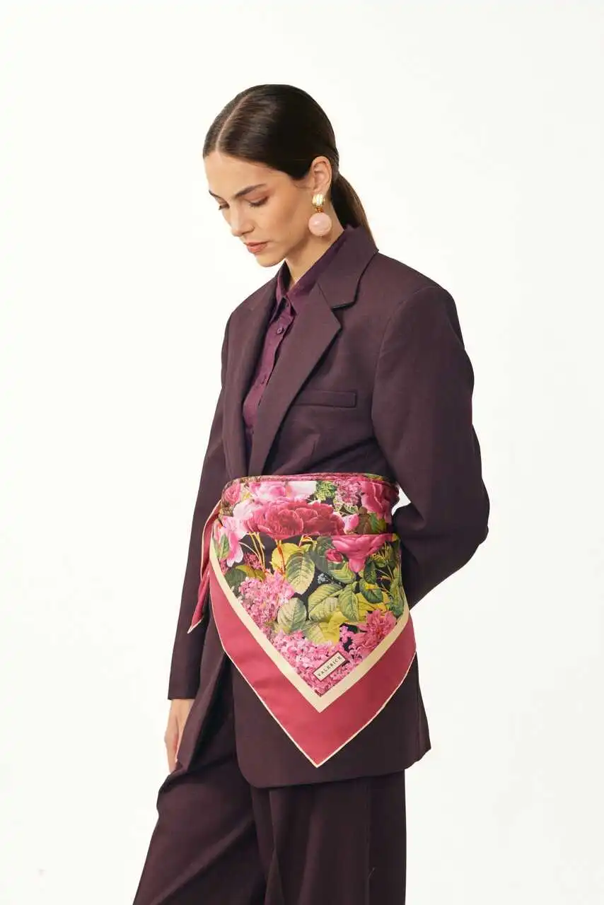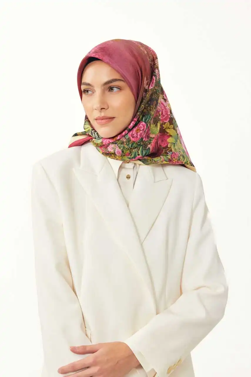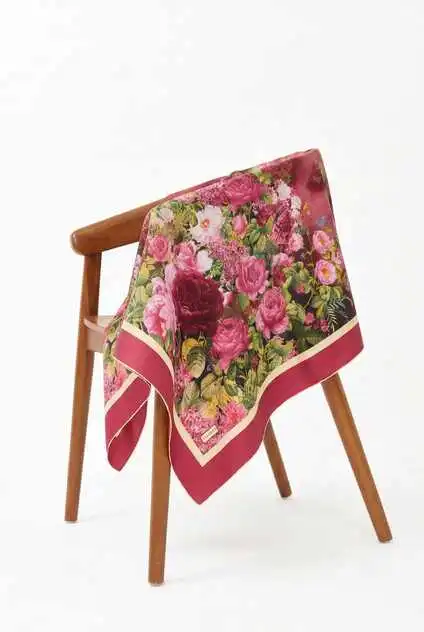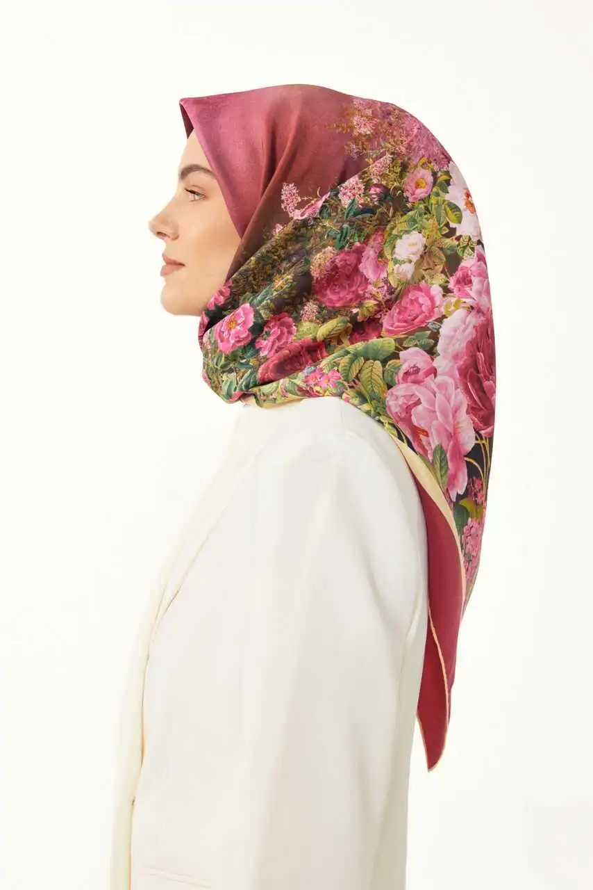 Yüksek kaliteli twill kumaşı ve büyüleyici gül bahçesi tasarımıyla stilinizi tamamlarken romantik ve zarif bir görünüm sunuyor. Bu eşarp, hem klasik hem de çağdaş kombinlere uyum sağlayarak gardırobunuzun vazgeçilmezi olacak.