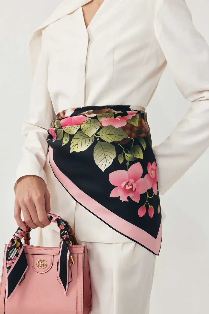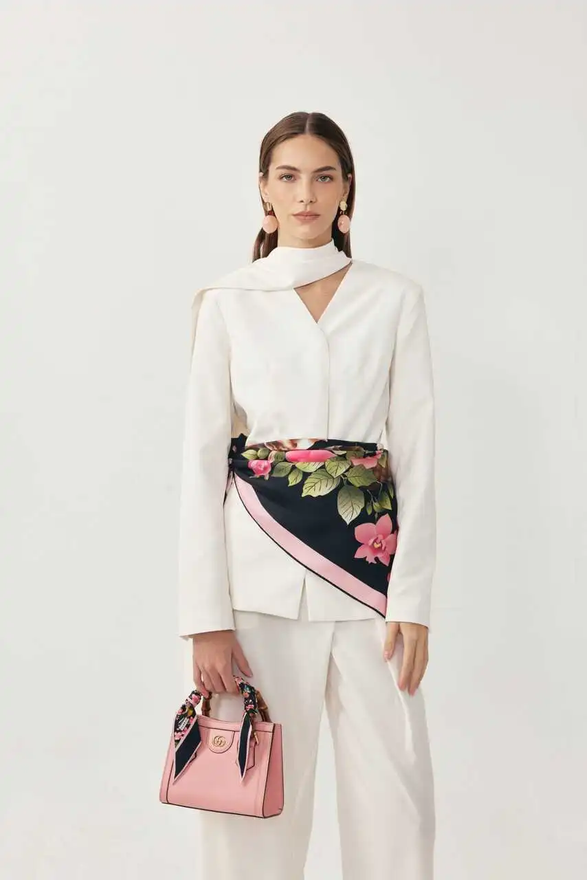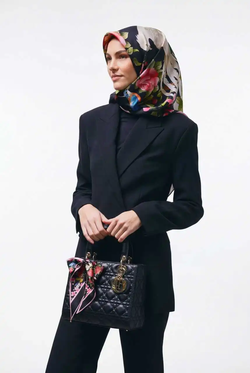 Yüksek kaliteli twill kumaşı ve zarif kuş ile çiçek motifli tasarımıyla stilinizi tamamlarken asil bir görünüm sunuyor. Bu fular, hem klasik hem de çağdaş kombinlere uyum sağlayarak gardırobunuzun vazgeçilmezi olacak.