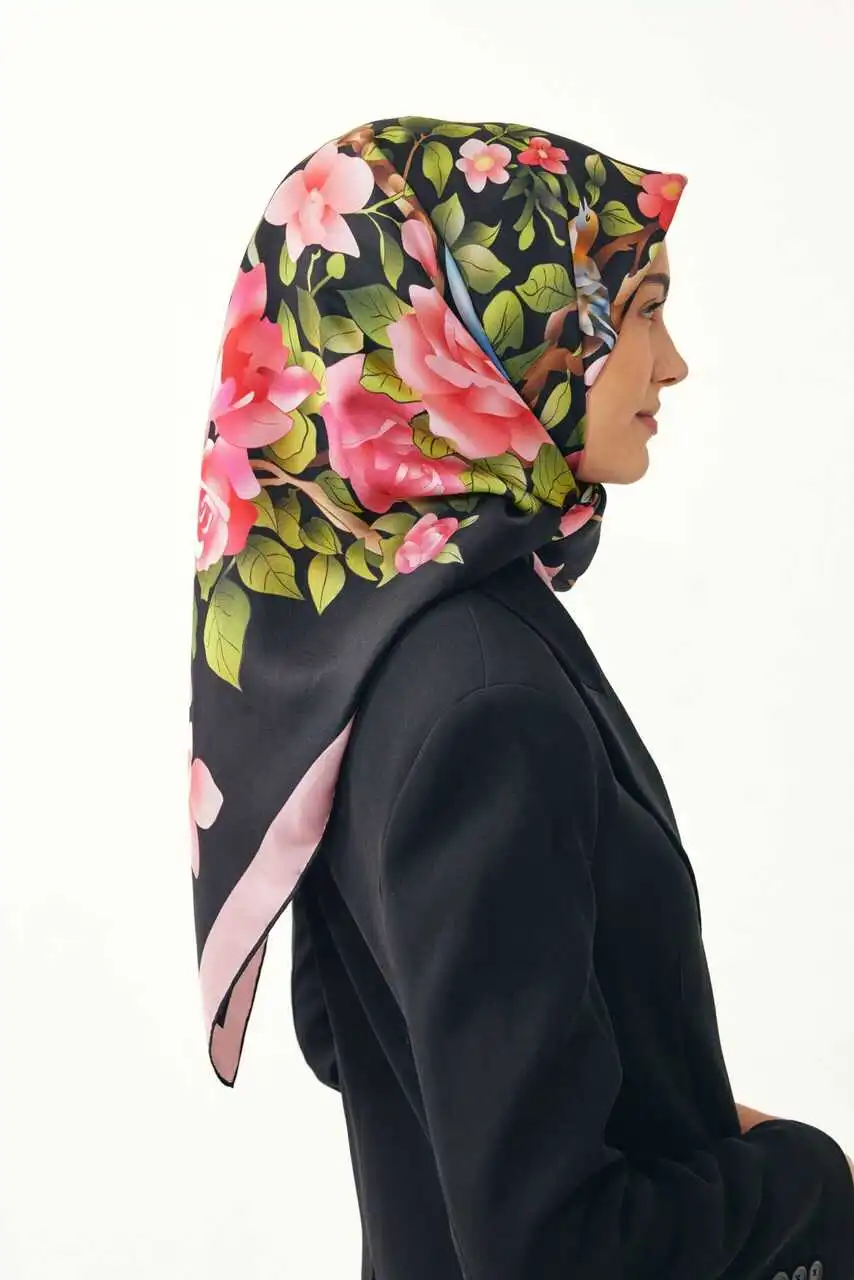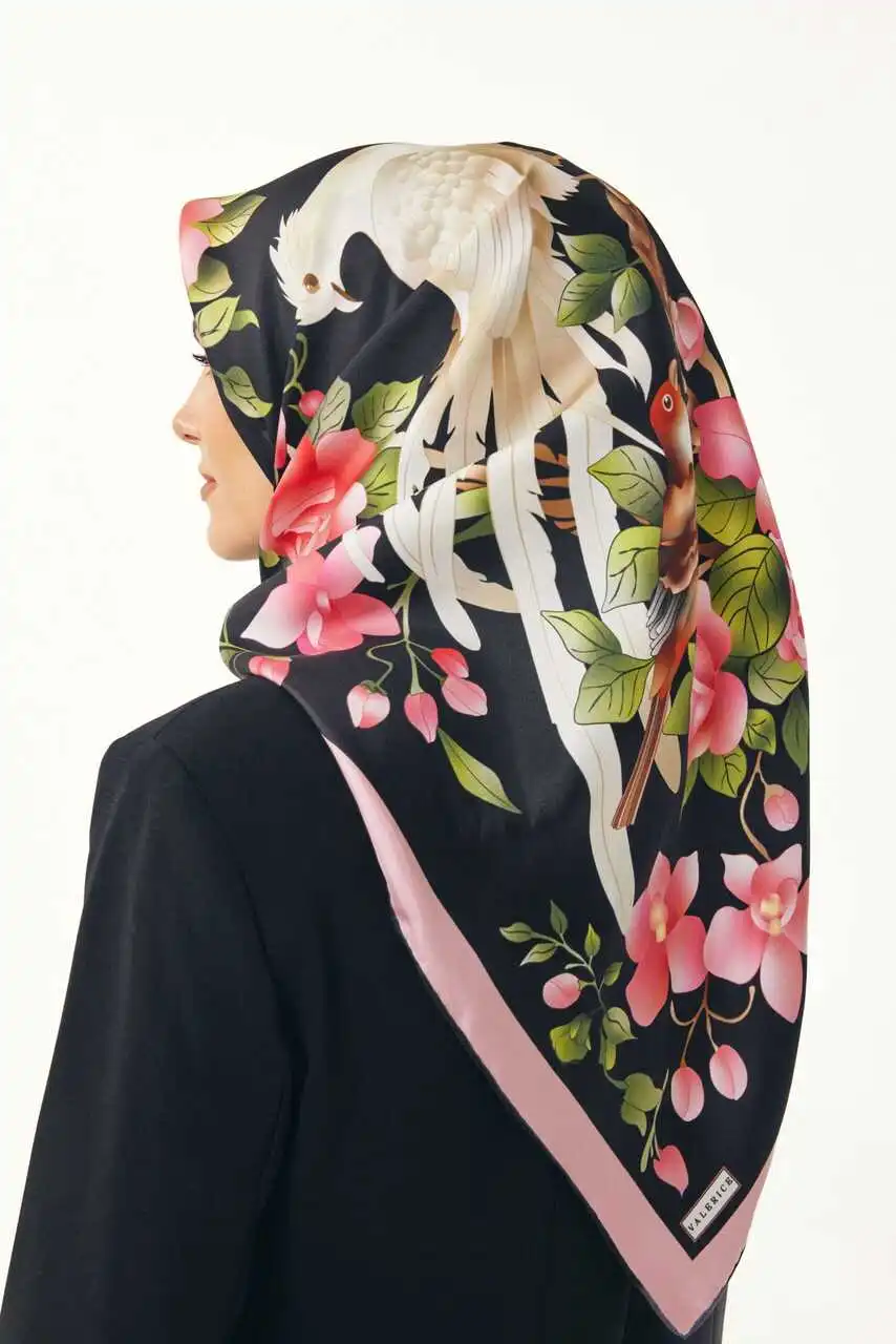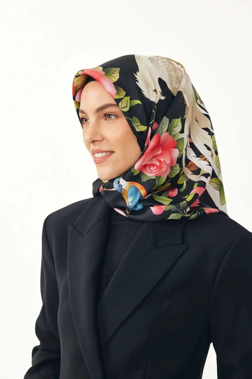Yüksek kaliteli twill kumaşı ve zarif kuş ile çiçek motifli tasarımıyla stilinizi tamamlarken asil bir görünüm sunuyor. Bu eşarp, hem klasik hem de çağdaş kombinlere uyum sağlayarak gardırobunuzun vazgeçilmezi olacak.