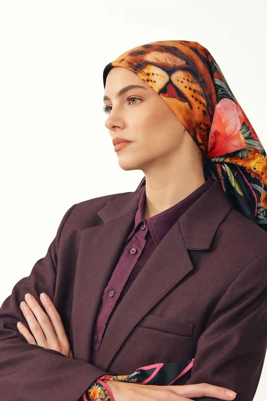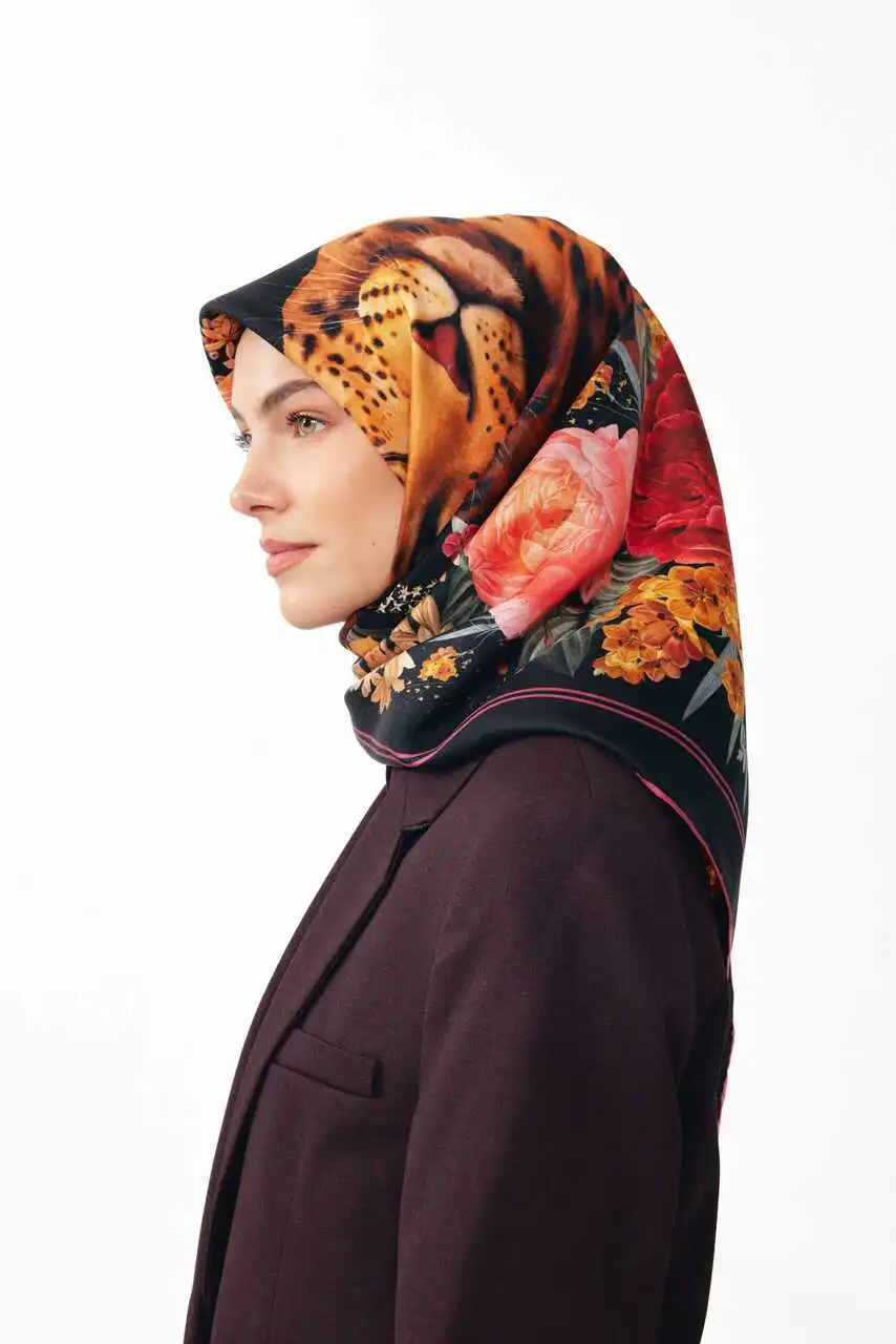 Yüksek kaliteli twill kumaşı ve vahşi doğanın asaletini yansıtan büyüleyici leopar desenleriyle stilinizi tamamlarken modern ve cesur bir görünüm sunuyor. Bu eşarp, hem günlük kombinlerinize dinamizm katacak hem de şık davetlerde fark yaratacak çarpıcı tasarımıyla gardırobunuzun vazgeçilmezi olacak.