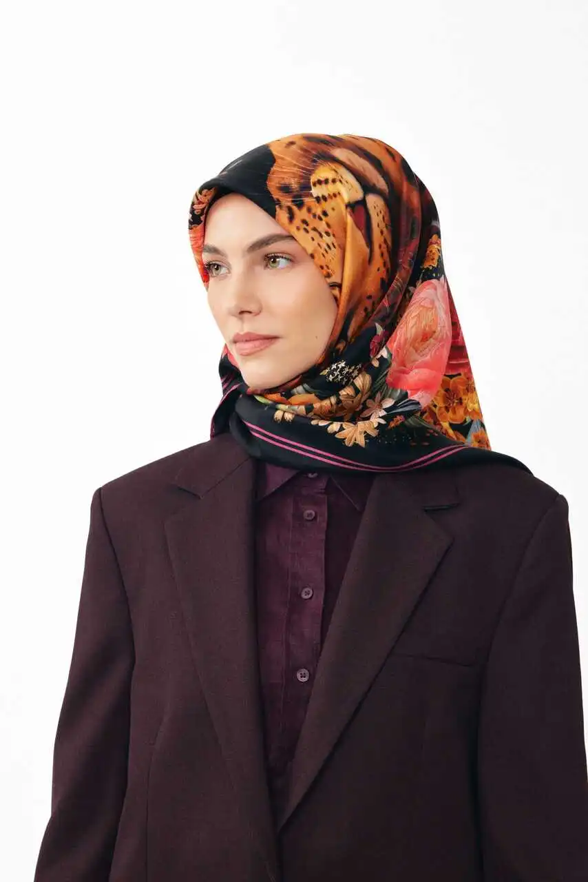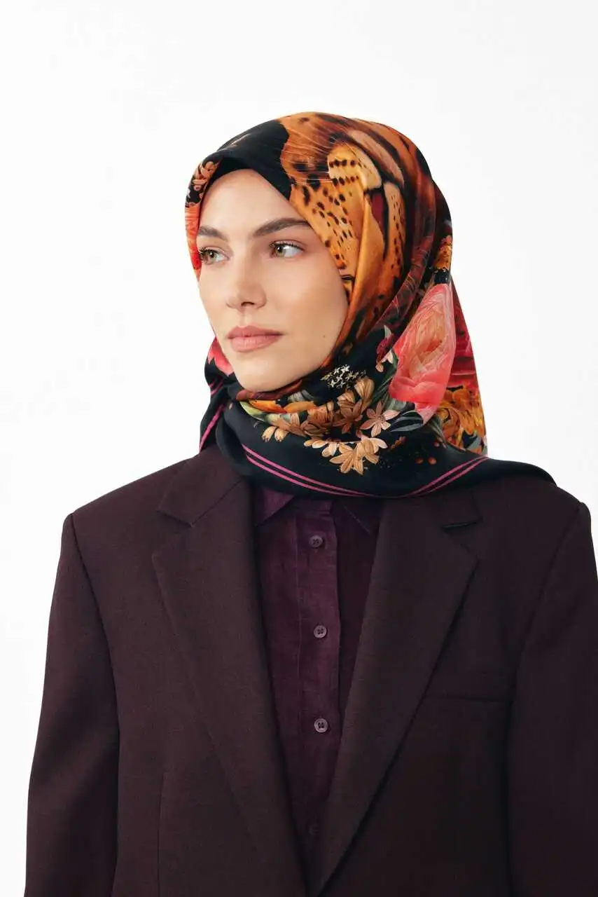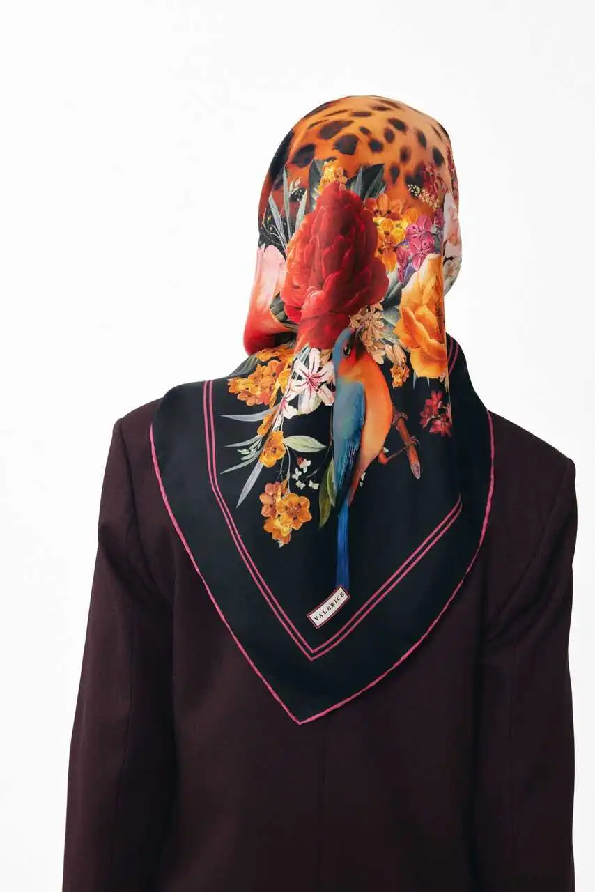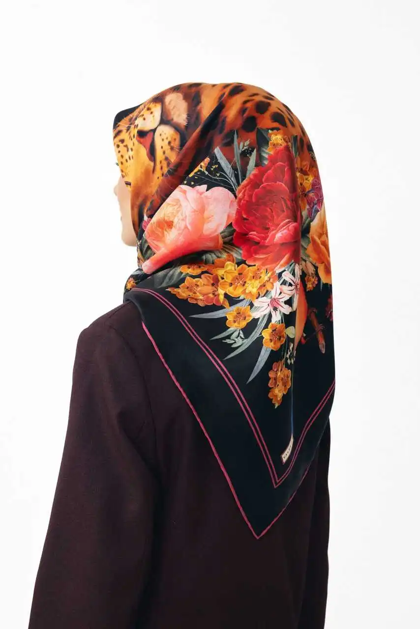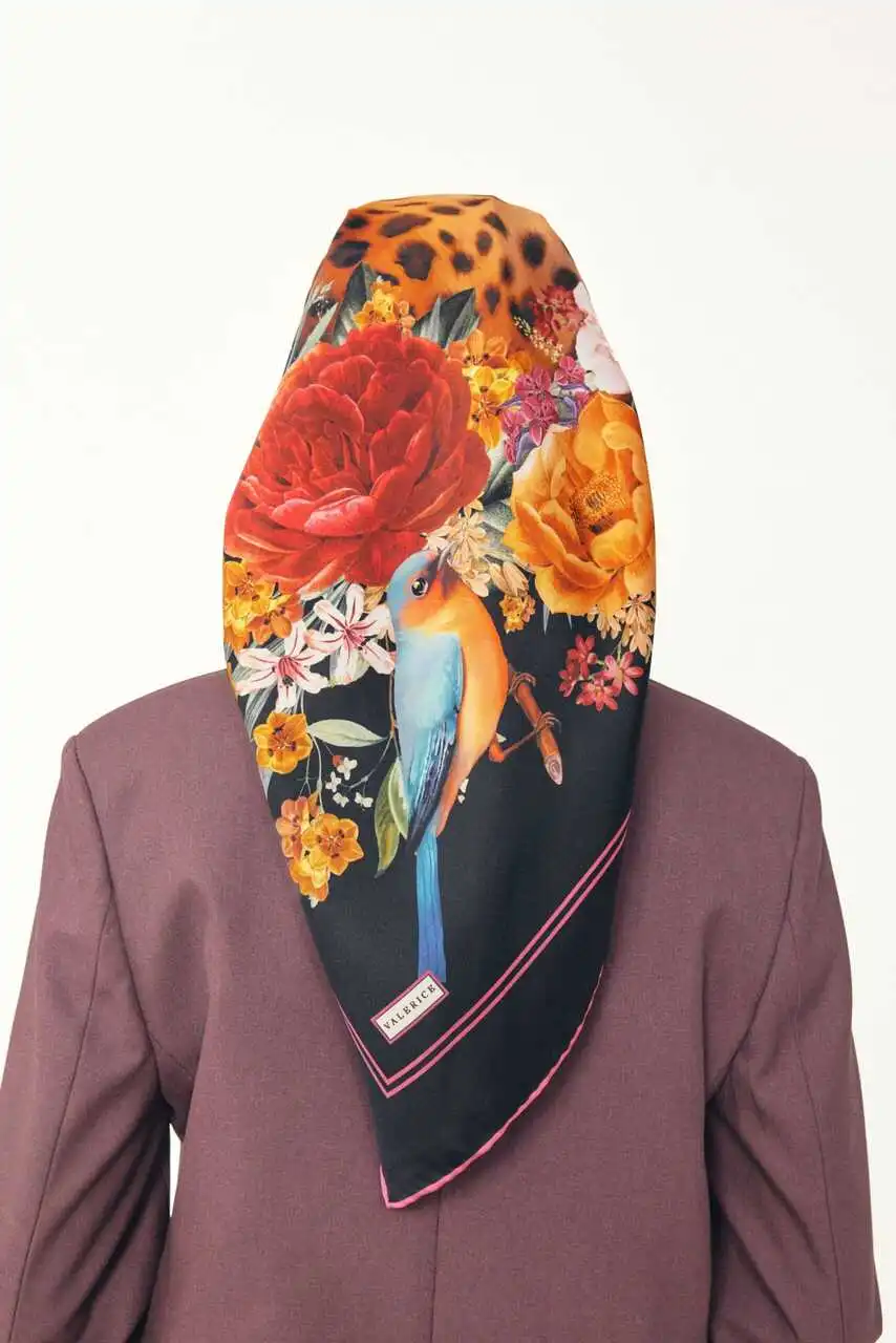 %100 ipek dokuma kumaşı sayesinde yumuşak dokusu ve canlı renklerin ahengini yansıtan parlak yüzeyi ile gün boyu konfor sağlar. Leopardan gücünü, çiçeklerden zarafetini alan bu benzersiz tasarım, her mevsime ve her tarza uyum sağlayan zamansız bir aksesuardır.